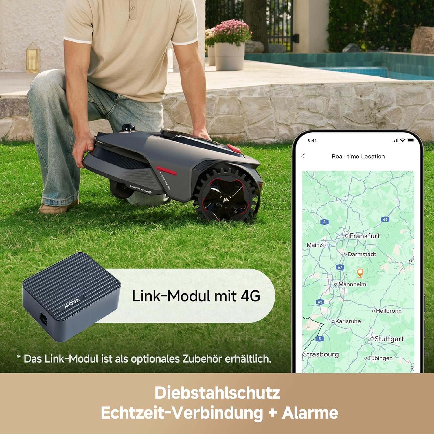 • TrueGuard Sicherheitssystem: Ein integrierter Diebstahlschutz mit Echtzeit-Ortung und Alarmfunktion sichert das Gerät ab. Verlässt der Mäher den kartierten Bereich, erhalten Sie sofort eine Benachrichtigung.