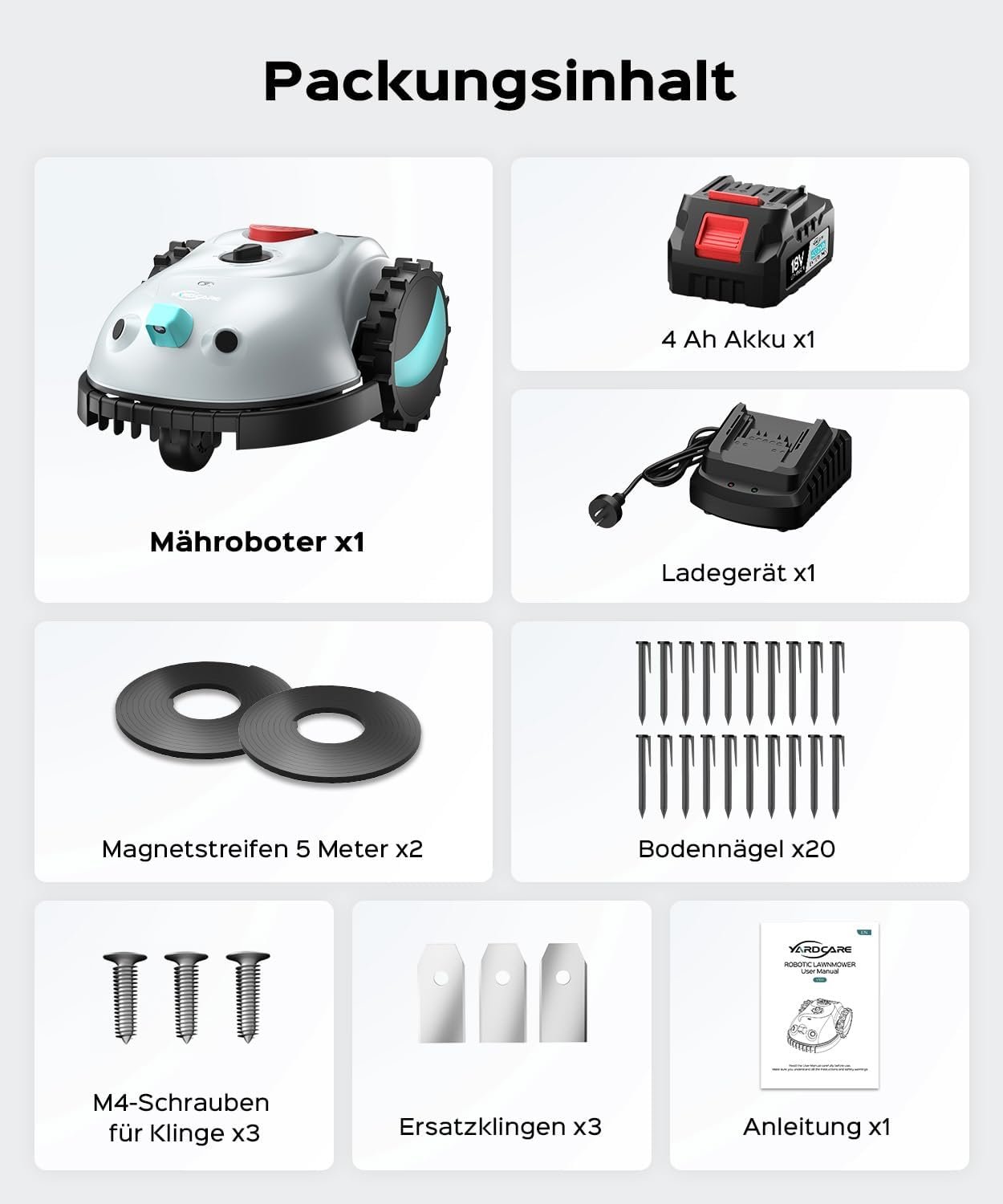• 1x YARDCARE V100 Mähroboter