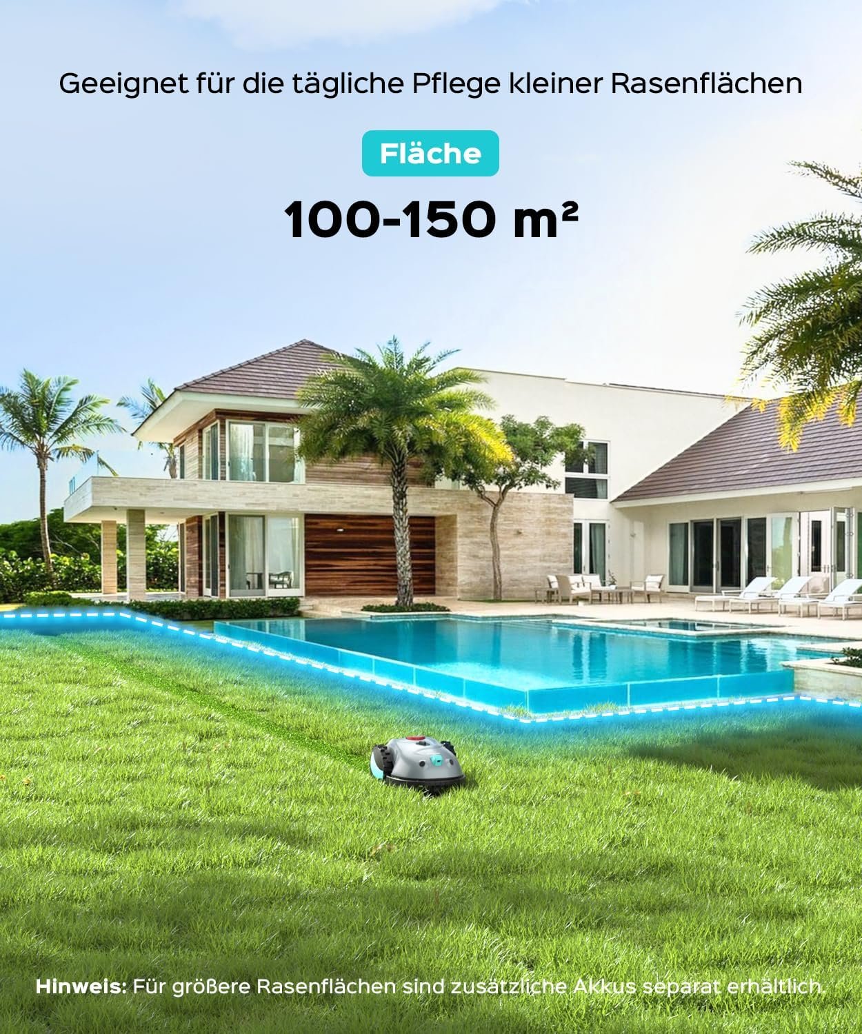 Schreibe die erste Rezension für „V100 Mähroboter ohne Begrenzungskabel – Vision-Navigation & 150-Arten Hinderniserkennung, bis 150 m², inkl. Magnetstreifen & Ersatzklingen“